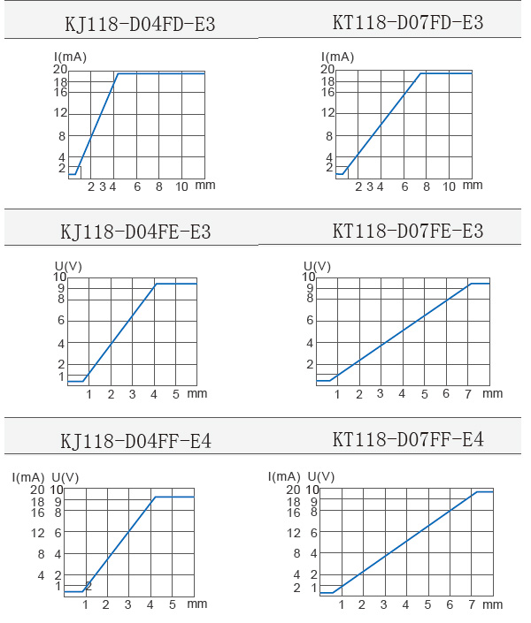 | 備注: 1.其它技術數據可向我們詢問。 2.各種模擬傳感器標準檢測體接近感應面,在規定的條件下,它們的可使用距離與輸出電流成比例,各曲線詳見備曲線圖。 ![]() | ||||